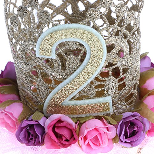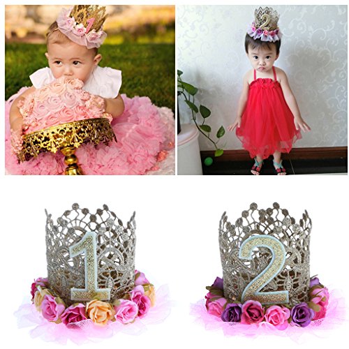 - クラウンはキラキラナンバー1「2」「3」「4」「5」「6」とレースの花の装飾を使用して作られており、赤ん坊の女の子の幼児に適しています