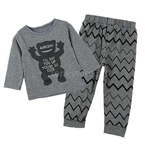 Lovoski 赤ちゃん 子供服 綿 Tシャツ + パンツ 衣装セット モンスター 普段着 全4サイズ - 100