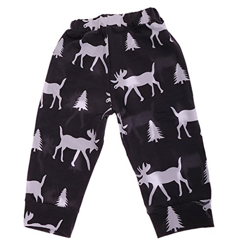 Lovoski ベビー 綿 長袖 トナカイ柄 Tシャツ パンツ 上下セット フード付き 部屋着 遊び着 通気性 全4サイズ - 100センチメートル