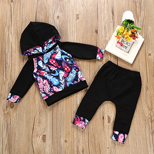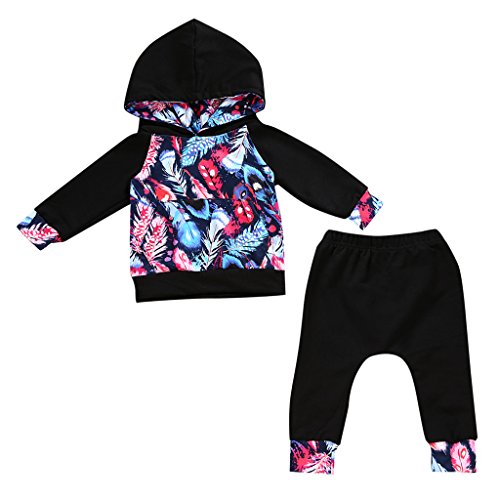 Lovoski 衣装セット トップス パーカー ロングパンツ 幼児 赤ん坊 男の子 女の子 服 普段着 全4サイズ - ブラック, 12〜18ヶ月