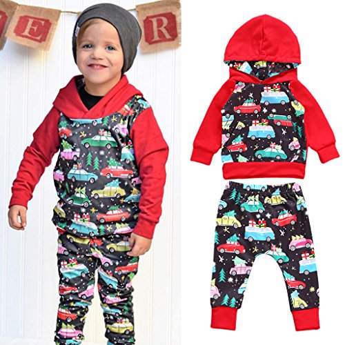 Lovoski トップ パンツ セット 男の子 サンタの車 クリスマスパーティ デイリーウェア 可愛い 贈り物 全4サイズ - 多色, 100