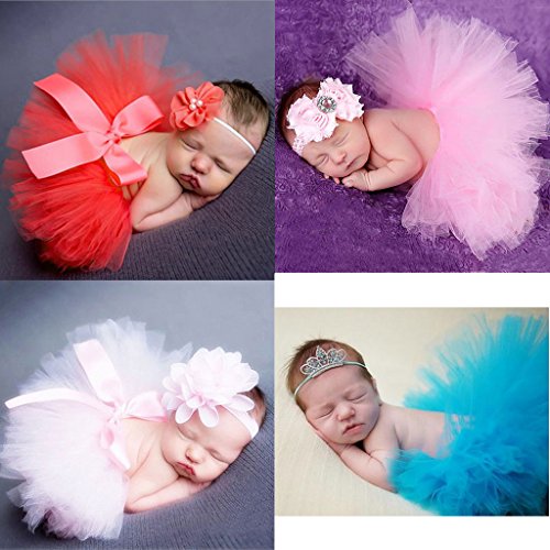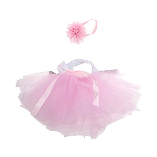 Lovoski 赤ちゃん チュチュスカート ミニスカート 写真撮影 小道具 ヘッドバンド付き ギフト 全4色選べる - ライトピンク