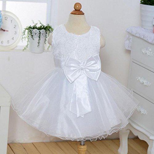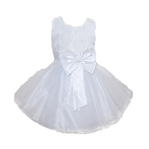 Lovoski 女の子 キュート 花 蝶結び ベルト付き プリンセスドレス ドレス 花嫁介添人 全6色6サイズ - 白, 120