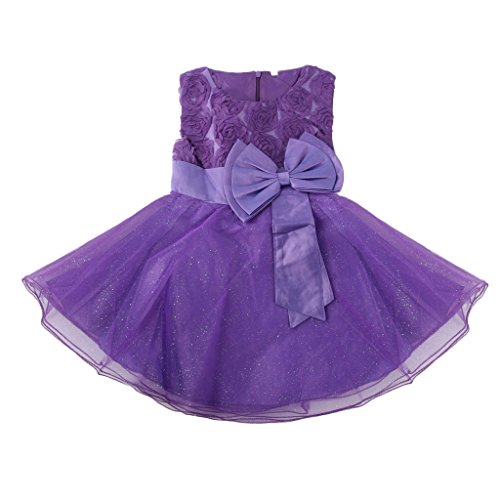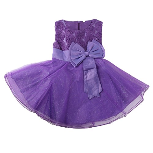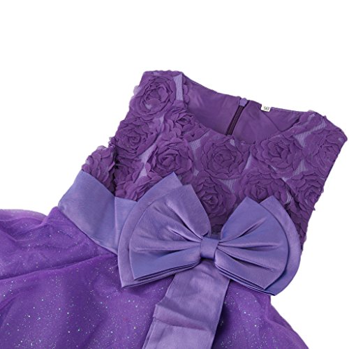 Lovoski 女の子 キュート 花 蝶結び ベルト付き プリンセスドレス ドレス 花嫁介添人 全6色6サイズ - 紫, 100