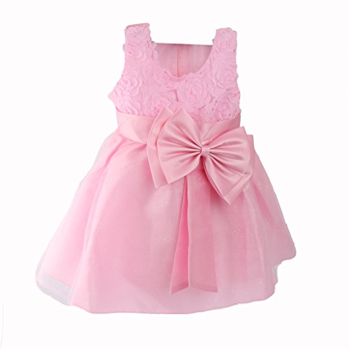Lovoski 女の子 キュート 花 蝶結び ベルト付き プリンセスドレス ドレス 花嫁介添人 全6色6サイズ - ピンク, 120