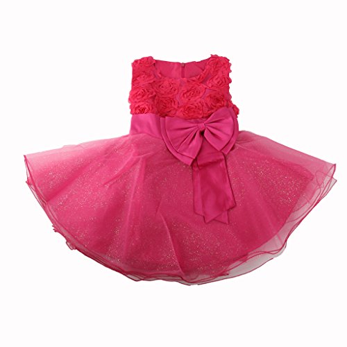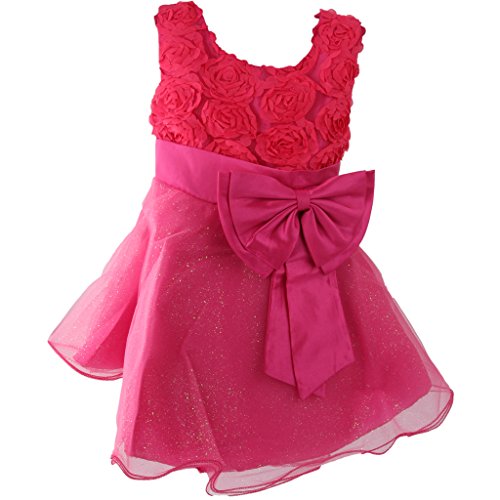 Lovoski 女の子 キュート 花 蝶結び ベルト付き プリンセスドレス ドレス 花嫁介添人 全6色6サイズ - ローズ, 120