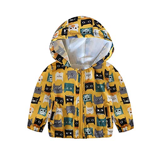 Lucaso 子供服 女の子 男の子 キッズ服 長袖 トップス カートン 花柄 ジップアップフード付き オシャレ 可愛い カジュアル 人気 コート アウター ジャケット 上着 通園 普段着 防風 防寒 アウトドア 誕生日 秋冬服 (100, イエロー)