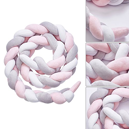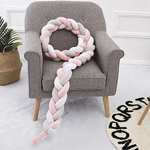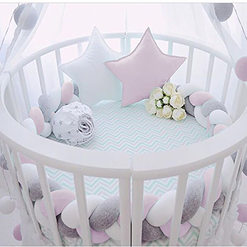 Luchild ベビーベッドガード・フェンス サイドガード 抱き枕 2M ノットクッション 赤ちゃんベッドバンパー ソファークッション 可愛い 部屋飾り 撮影小物 北欧 癒しアイテム 出産祝い プレゼント ベッドバンパー(ホワイト・ピンク)