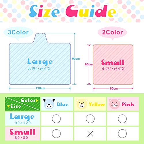 - スモールサイズ(約80×80)年齢対象0歳-幼児に適用 / ラージサイズ(約90×120)年齢対象0歳-小学生まで適用。