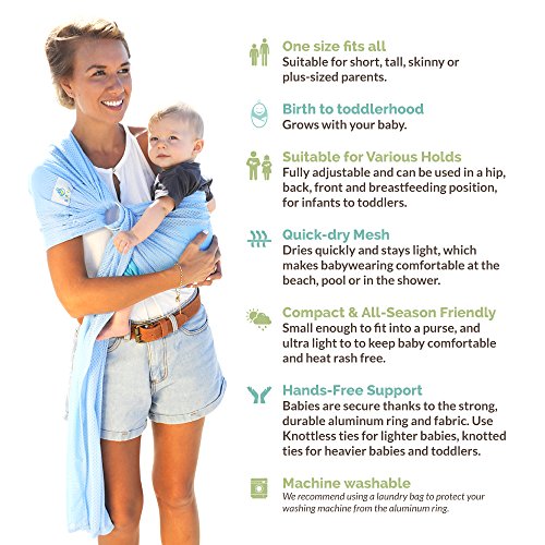 Lucky Baby Ring Sling with Breathable, Quick-Dry Mesh Fabric - Fashionable & Adjustable Carrier, Excellent for Summers, Beach, Pool & Shower. Suitable for Infants to Toddlers and all yr babywearing. by Lucky Baby