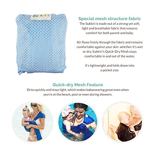Lucky Baby's SUKKIRi is a Top Rated baby sling, and The Original. It's light weight, breathable & cool for the really hot summers, making babywearing easier. This mesh ring sling can be adjusted for Both Moms and Dads to use, so no need to buy extra carriers that only fit one parent. It's Excellent for beach/pool vacations - the fabric is soft and comfortable in and out of the water and dries quickly.;Recognized by the International Hip Dysplasia Institute as hip-healthy, offering Ergonomic & Lumbar Support, which means baby's hips and spine are correctly aligned. Passed CPSC and ASTM International Baby Safety Standards, which means your baby is safe and secure in a strong yet soft baby carrier. Sukkiri offers Hands Free Support, Its aluminum rings are completely adjustable and can be used for newborns to toddlers, skinny or plus sized parents, tall or short parents.;Compact and portable. Folds up nice and small so you can keep it in your purse or pocket for when you are running errands OR traveling OR if you have a clingy baby who does not want to be put down. The Top and Bottom Rail are easily distinguishable, so it makes it especially easier for parents who are new to babywearing, to adjust the baby sling. Sukkiri is a Premium Quality Baby Carrier that is equally comfortable for both Parents and Babies.;Great baby gear whether you're at home or travelling because it's Comfy & Super Easy to use. (Additional carrying instructions are sent in your first email). Sukkiri can be used for privacy while breastfeeding, PLUS baby can be carried in different positions: (1) Front facing, (2) side on either hip or (3) backpack. Use knot-less ties for infants and knotted ties for toddlers and heavier babies.;Fabric is soft YET STRONG and won't rub against your neck. It's easy to clean, Premium Quality, machine washable, and it's pretty too. For more information, please scroll down to check out the Description AND view your discount offer.