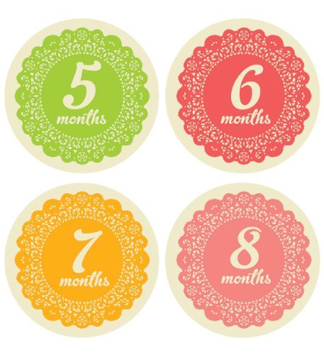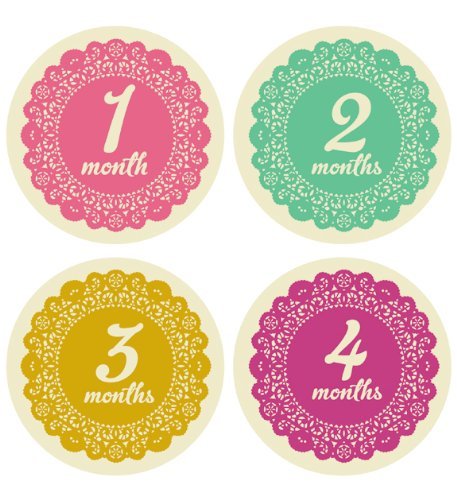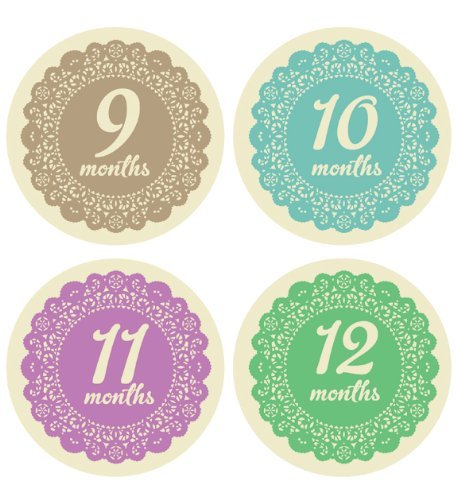 - 12 stickers, months 1-12: 4" High quality pre-cut stickers