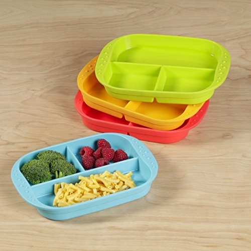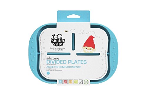 Kindervilleの積み重ね可能・仕切りシリコンプレートは環境に優しく、電子レンジや食洗機対応です。有害な使い捨てのプラスチック製プレートの替わりになる、楽しく機能的で使い勝手のよい食器です。サイズ:9インチ長さx6.5インチ幅。-