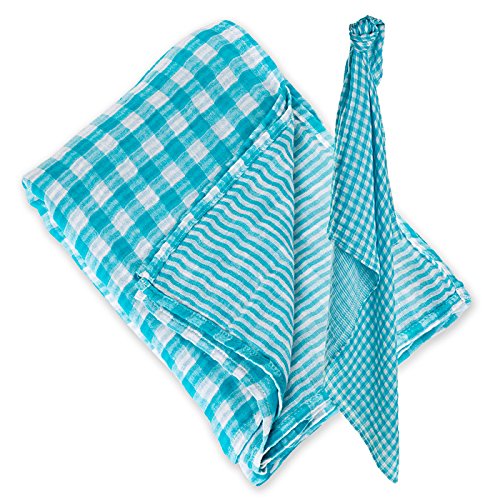 Lulujo Reversable Swaddling Blanket (Aqua Fun) by lulujo