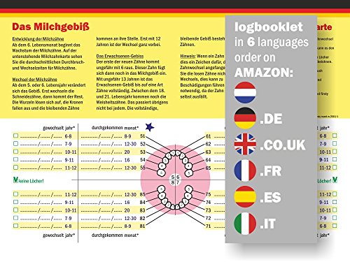 - Includes a Logbooklet (4 Pages, full colour, 105 x 75 mm, with lots of space for noting when teeth erupted and came out. With a tell story of 'Sarah and the Tooth Fairy'. Fully in English.