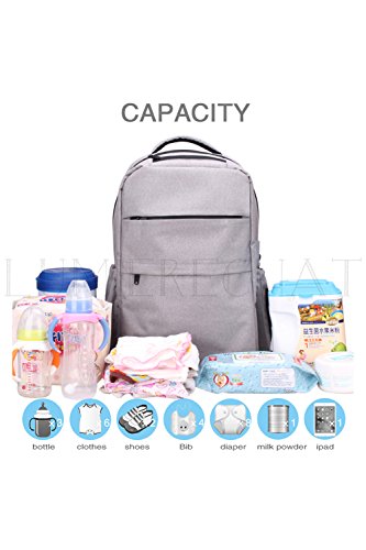 Lumierechat マザーズバック マザーズリュック ママバック リュック リュックサック 多機能 大容量 保冷 (高さ43cm, グレー)