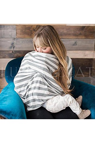 Lumierechat 授乳ケープ 授乳 カバー ポンチョ ストール ボーダー 多機能 伸縮性 360度安心 コットン 綿 (幅65cm, ホワイト)