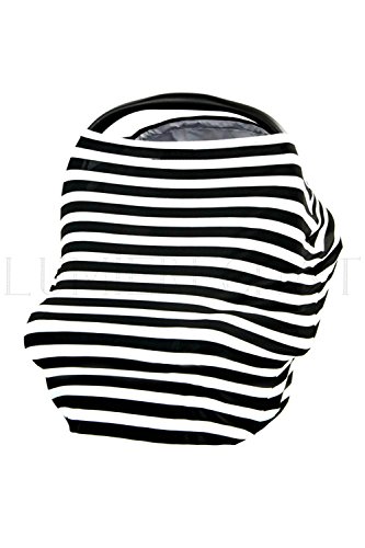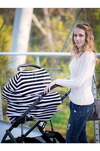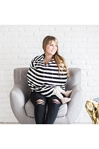 Lumierechat 授乳ケープ 授乳 カバー ポンチョ ストール ボーダー 多機能 伸縮性 360度安心 コットン 綿 (幅65cm, ブラック)