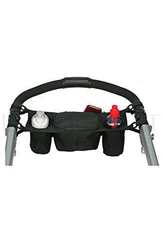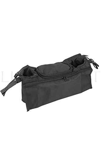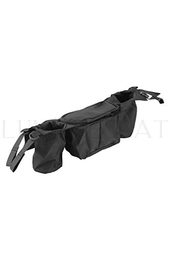 Lumierechat ベビーカー ベビーカー用バック 乳母車 多機能 小物入れ ドリンクホルダー 整理 ジッパー 黒 (横36㎝, ブラック)