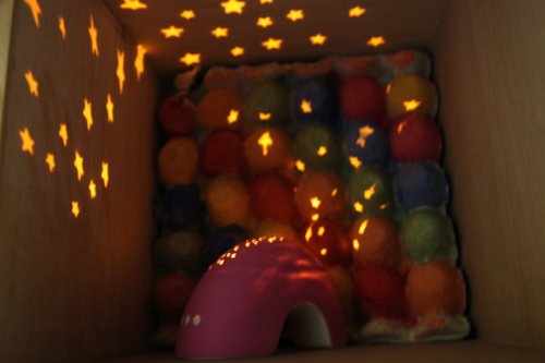 商品紹介 「こもりうた エレファント おやすみ プラネタリウム」はお子様を安らかに眠らせてくれるロマンチックなお友達。暖かい光を放ち、3m以内の壁や天井を満天の星の世界にしてくれます。10分間か20分間の子守唄やカラー・ローテーションもできるプラネタリウムを選んでください。プラネタリウムも45分で電源がオフになるようにセットされているので、そのまま眠ってしまっても大丈夫です。 [使い方] 左のボタン(子守唄:10分間) 1回目のタッチ:10分間の子守唄がスタート 2回目のタッチ:子守唄がストップ 右のボタン(子守唄:20分間) 1回目のタッチ:20分間の子守唄がスタート 2回目のタッチ:子守唄がストップ 中央のボタン(プラネタリウム:45分間) 1回目のタッチ:オレンジのお星さま 2回目のタッチ:ブルーのお星さま 3回目のタッチ:グリーンのお星さま 4回目のタッチ:ローテーション:オレンジ→ブルー→グリーンの順番に 5回目のタッチ:プラネタリウムと子守唄がストップ 45分経過するとプラネタリウムの電源がオフになります。