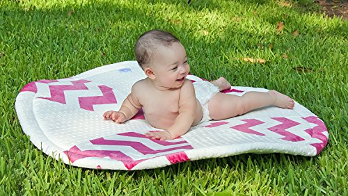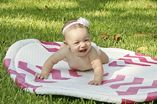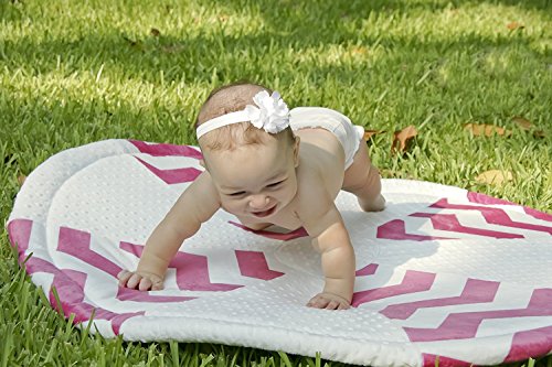 Introducing your baby to tummy time has many benefits. Begin using the mat at 3 to 4 months. It helps strengthen the baby's neck, back, and trunk muscles. Babies need strong muscle groups in order to sit, crawl and walk. Tummy time will help avoid flat head syndrome. Babies who spend too much time on their backs or in baby recliners can develop flat spots on their heads. This is also known as positional plagiocephaly. Tummy time also helps with visual development as your baby learns to track movement and focus on objects that surround them. Your baby will LOVE the soft soothing tummy time mat and mom will love the developmental benefits.