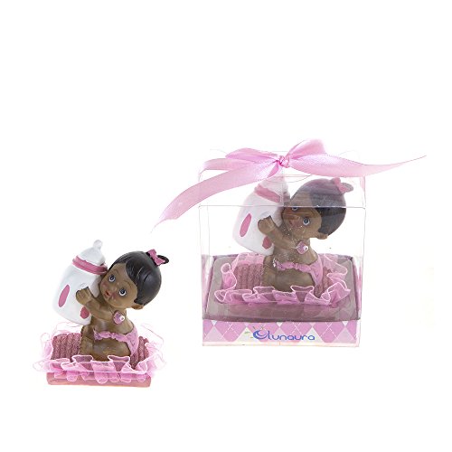 Lunaura Baby Keepsake - Set of 12 Girl Black Ethnic Baby Sitting on Pillow Holding Bottle Favors - Pink by Lunaura