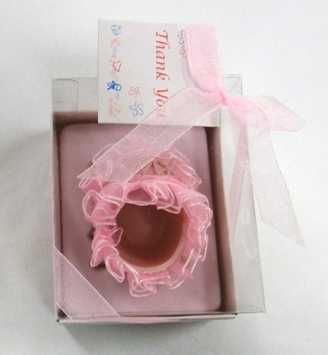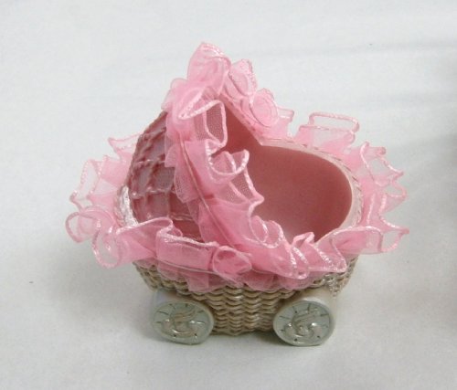 Baby Stroller With Thank You Card Favors - Pink, Set of 12;Baby stroller with laces on the outer rim keepsake;Comes encased in an appealing gift box with clear plastic front and a satin ribbon bow;These favors are designed for gifting right out of the box and will leave an everlasting memory on your guests;Made of Poly Resin