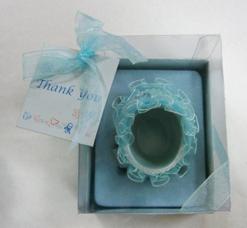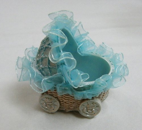 Baby Stroller With Thank You Card Favors - Blue, Set of 12;Baby stroller with laces on the outer rim keepsake;Comes encased in an appealing gift box with clear plastic front and a satin ribbon bow;These favors are designed for gifting right out of the box and will leave an everlasting memory on your guests;Made of Poly Resin