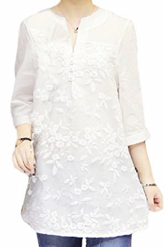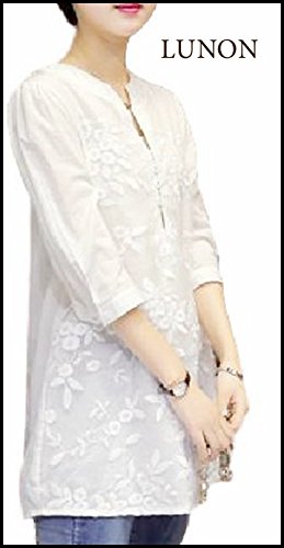 (ルノン)Lunon チュニック レディース 大きいサイズ 花柄 レース ブラウス トップス 白 (L)