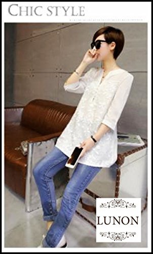 花柄刺繍とシフォンレース使いがとっても高級感&お洒落に魅せてくれる長袖フォーマル シャツブラウス♪腰回りふんわりゆったりだからマタニティー初期、産後の方にも◎ ママになってもお洒落を楽しみたい♡可愛いママでいたい♡そんなお洒落ママの願いを叶えてくれるママコーデにぴったりな一枚♪産後もずっとながく着れるので経済的で嬉しいですね!襟なしなのでスッキリした印象で、ロングネックレスや、アクセサリーももたつかずキレイ♡ フロントボタンも胸元まで開くデザインなので、授乳時に下着を整えるのにも楽ちん♪ウェストゆったり&ふんわりデザインは、産後の体型カバーに◎フォーマル服にも代用できるので、お子様の卒園、入園、入学にもお役立てください♪ デニムパンツや、レギンスなどでのきれいめカジュアルも良し、 お食事や会食、結婚式・パーティー用に、ワンピース、ジャケット、スーツ、パンツスーツにコーデして華やかアレンジも!!幅広いコーデに着回し力の高いレディース カッターシャツ♪ Vネックニットやカーデ、ジャケットのインナーにも◎、色々と使い回せる万能デザイン♪ 厚すぎず、ほどよい生地感なので春夏は袖を折りこなれ感を演出して。秋冬は、ジャケット、カーディガン、ベストをプラスして◎オールシーズン着回せるのも大きな魅力のひとつ♡ サイズ:S・M・L・XL・XXL 素材:主要素材・綿 、 ポリエステル ▼▼ Lunon (ルノン) ▼▼ 商標登録 第5964051号 ▼▼