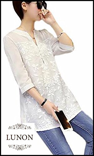 (ルノン)Lunon チュニック レディース 大きいサイズ 花柄 レース ブラウス トップス 白 (M)