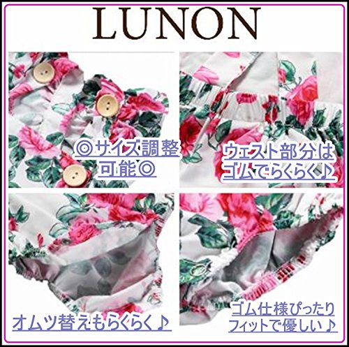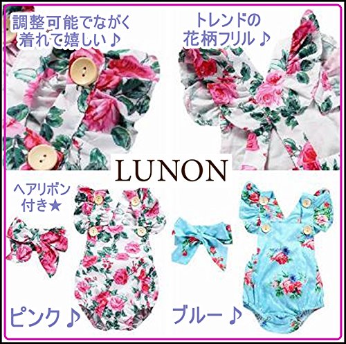 (ルノン)Lunon 女の子 ベビー服 普段着にも着れる 水遊び ロンパース 花柄 フリル 赤ちゃん ワンピース 風 水着 ヘアアクセ リボン付き 2点セット ピンク (80cm ピンク)