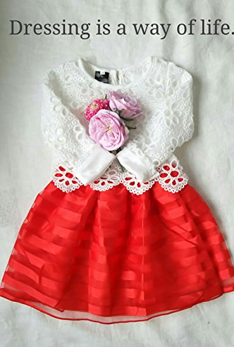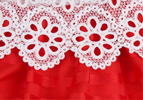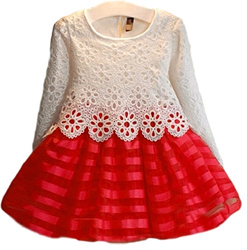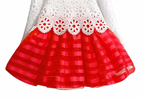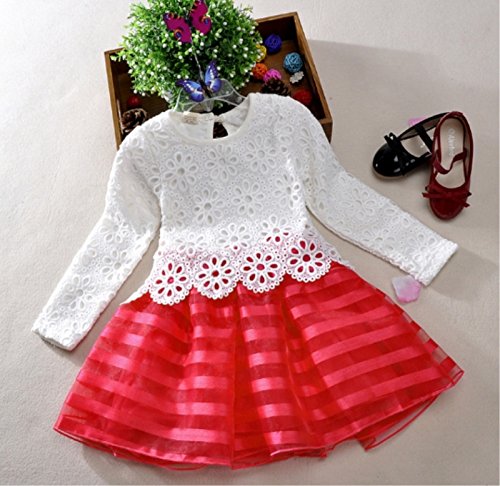 (ルノン) Lunon 子供服 女の子 フレア ドレス スカート 長袖 フォーマル レース サテン生地 ワンピース 赤 白 結婚式 入学式 発表会 (100, レッド)