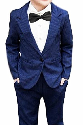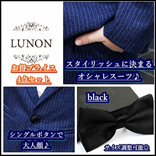 (ルノン)Lunon 子供スーツ 4点 セット フォーマル ジャケット ズボン シャツ 蝶ネクタイ リボン 子供 男の子 キッズフォーマルパンツ キッズ フォーマル服 ベビー服 ベビー 100 110 120 130 140 スーツ セットアップ 紺 (110, ネイビー)