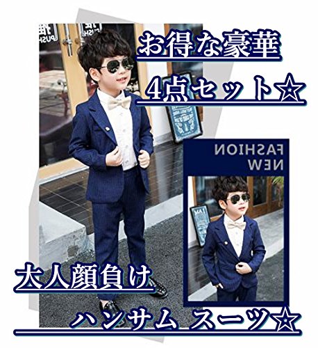 - ジャケット、スラックス、白シャツ、蝶ネクタイの豪華4点セット☆これだけで、どんなシーンもお洒落にもかっこよくきまるキッズ フォーマル セット♪ すぐにサイズアウトしてしまう時期だけど人生でたった一度の最高に可愛い瞬間をお洒落な洋服で写真にのこしてあげたい♪そんな優しいママの気持ちを叶えてくれるプチプラ お洒落キッズ スーツセット♪