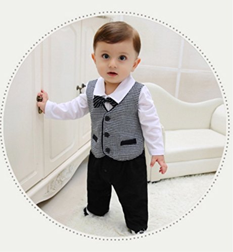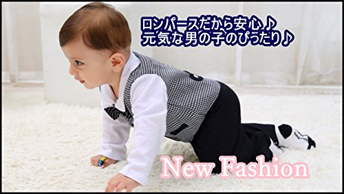 - 本格的なつくりなのに、シャツもズボンもベストも全て一体型のベビーフォーマル ロンパース♪さっと着るだけで大人顔負けオシャレな英国風タキシードに♪