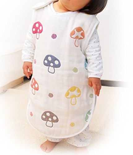 (ルノン)Lunon 綿 100 ガーゼ スリーパー 子供服 コットン 素材 ベビー 子供 冷え防止 タオル 寝袋 寝具 出産お祝い (ジュニア, キノコ)