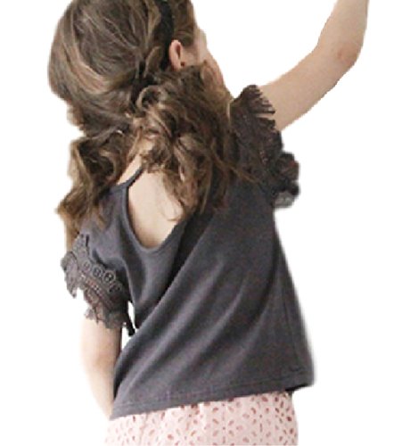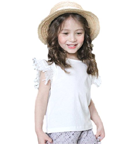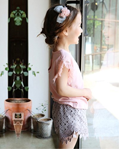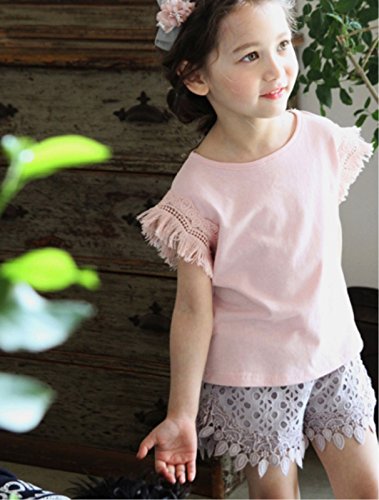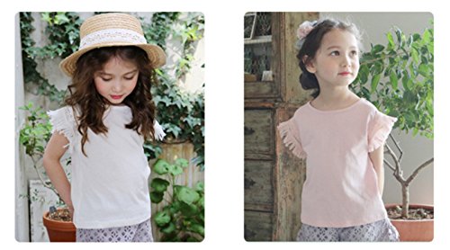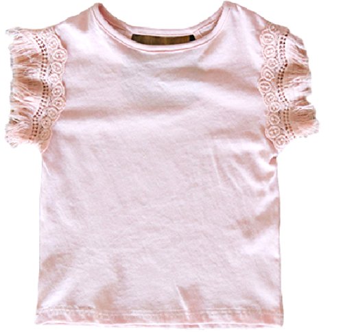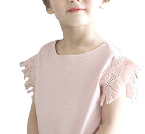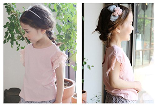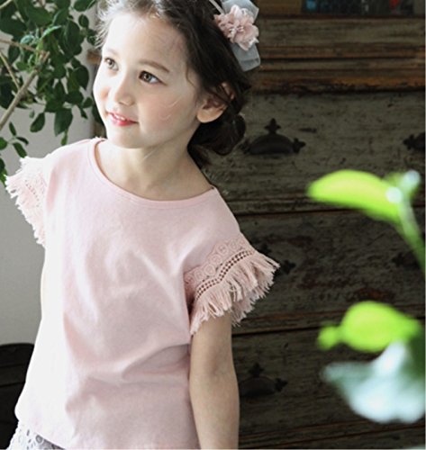 (ルノン)Lunon Tシャツ 無地 キッズ 白 スポーツ 子供服 女の子 花柄 レース 背中 穴あき デザイン 丸首 フリンジ 袖 ガーリー系 トップス (120, ピンク)