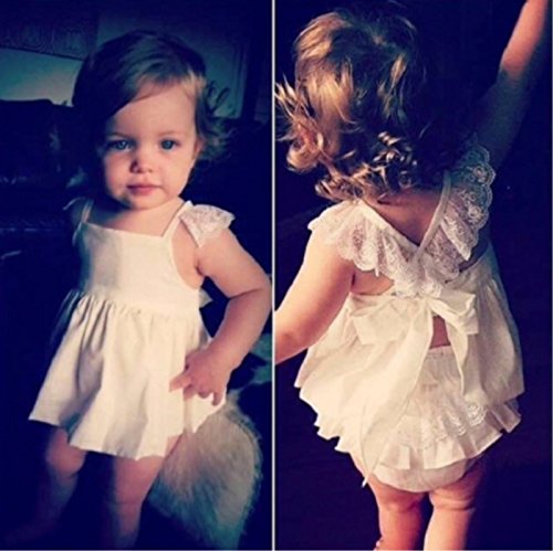 (ルノン)Lunon 子供服 女の子 花柄 レース 夏 ワンピース ブルマ 2点 セット フリル リボン エプロン ワンピ チュニック プール 水遊び パンツ (90, ホワイト)