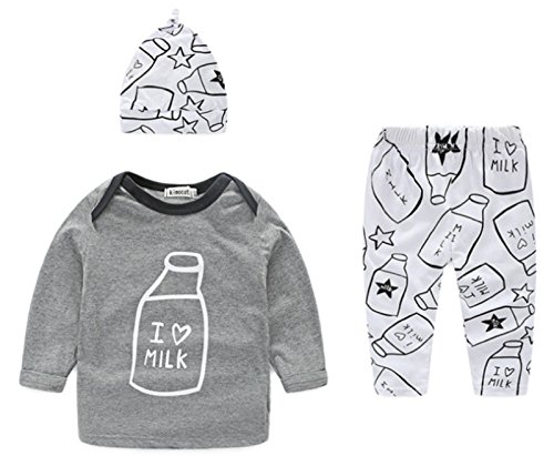 - トップス・ボトムスには、キュートなMILK柄をデザイン。こちらは、長袖・長ズボン・帽子の3点セット♪ブラックのセットは長袖・長ズボンの2点セットになります。(帽子なし)