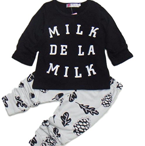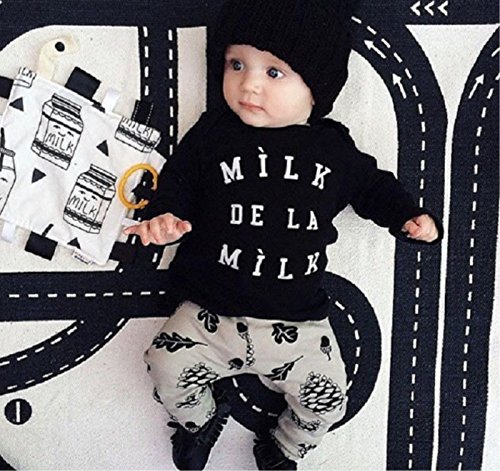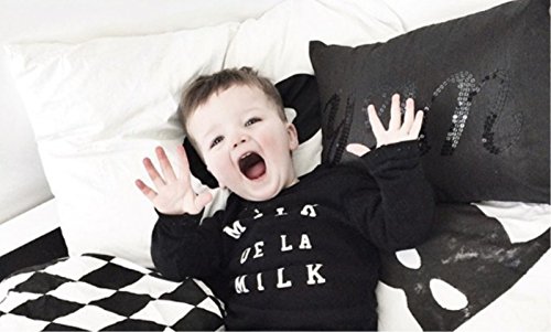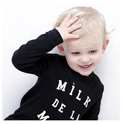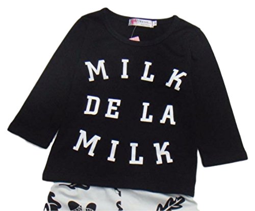 (ルノン)Lunon ベビー 子供服 長袖 長ズボン 上下 セット 綿 素材 ロゴ プリント T-シャツ (90, MILK ブラック)