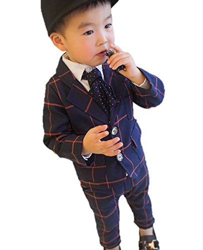 (ルノン)Lunon ボーイズ スーツ ネイビー チエック 柄 ジャケット パンツ 上 下 2点 セット 卒園 入学 発表会 正装 フォーマル (110)