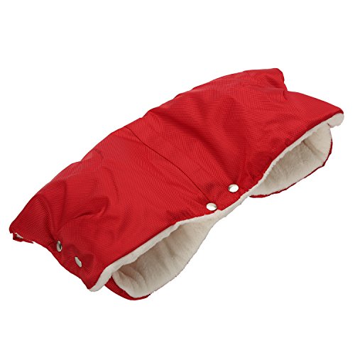 Luojidaベビーカー用ハンドマフ ベビー防寒手袋 秋 冬 暖かい手袋 お出かけ防寒 黒 防水仕様で 寒い雨の日や雪の日に最適 ハンドル一体型・セパレート型 両方装着可能 (レッド)