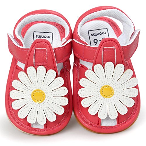 ルテンズ(Lutents ) 乳児靴 サンダル マジックテープ お花 女の子 男の子 滑り止め 子供 靴 シンプル 0-3歳 誕生日 プレゼント ベビーシューズ 耐磨 おしゃれ カッコイ 履きやすい (13CM, 赤)