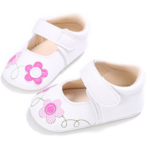 Lutents ベビーシューズ 靴 赤ちゃん靴 滑め防ぐ靴 室内履き 歩行靴 フォーマルシューズ 刺繍花 ガールズシューズ 滑り止め トレーニング ルームシューズ 出産お祝いプレゼント (13cm(12-18月), ホワイト)