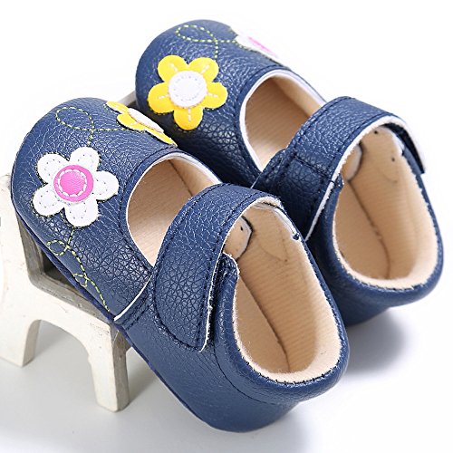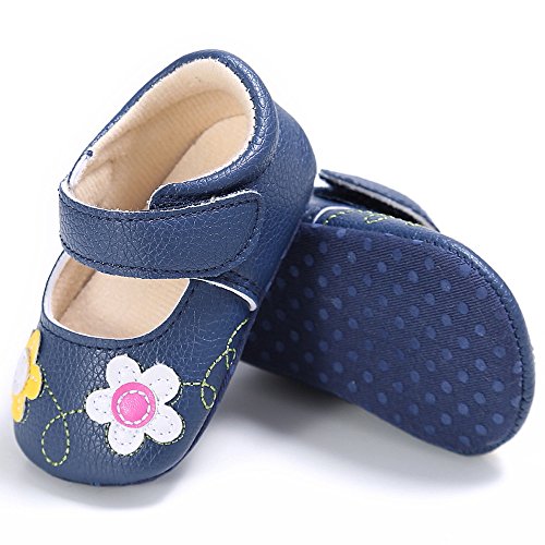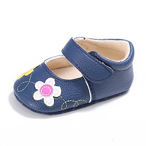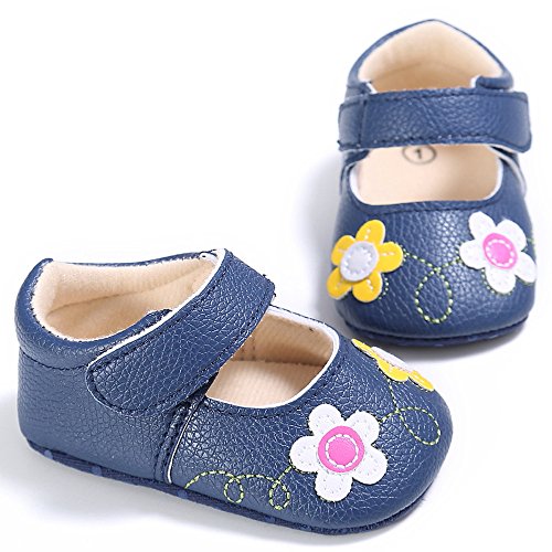 Lutents ベビーシューズ 靴 赤ちゃん靴 滑め防ぐ靴 室内履き 歩行靴 フォーマルシューズ 刺繍花 ガールズシューズ 滑り止め トレーニング ルームシューズ 出産お祝いプレゼント (13cm(12-18月), ブルー)