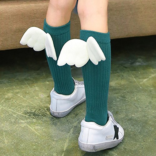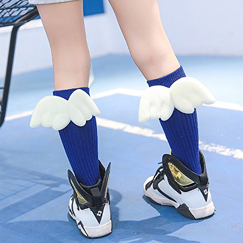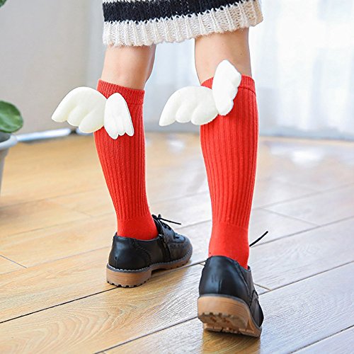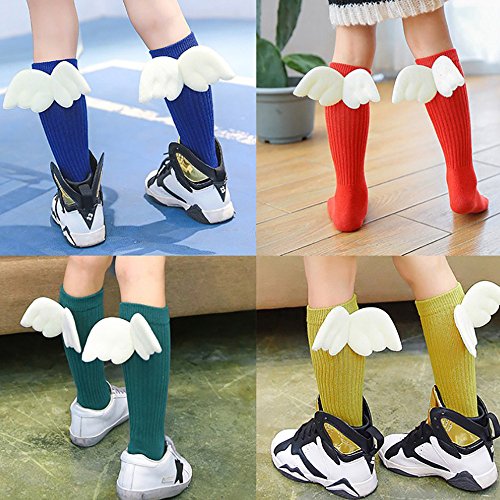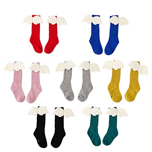 Lutents 可愛い翼付き ベビー 靴下 ハイソックス 7足セット おしゃれ 可愛い入学 子供用 幼稚園 保育園 小学生 入園 お祝い プレゼント 春 秋 冬 カラフル かわいい リブ編み ステキな翼が付き 綿 (4-6歳)