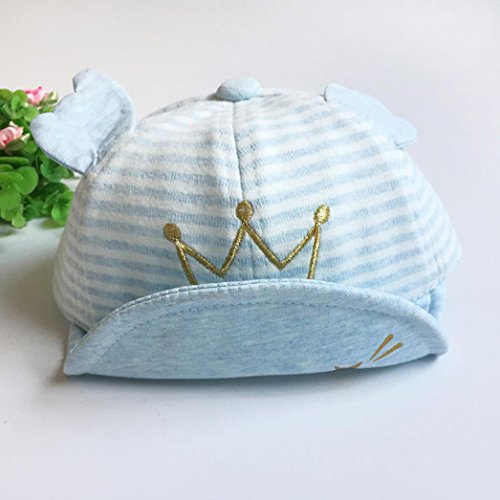 ルテンズ(Lutents )キャップ クマ耳 クラウン 女の子 男の子 子供 可愛い ストライプ 帽子 コーデ アクセント キュート 上品 スパンコール レース 可愛い サイズ調整可 野球帽 春夏 旅行 UVカット 1-3歳 48-50cm (青)