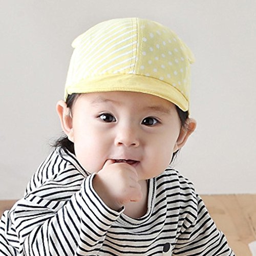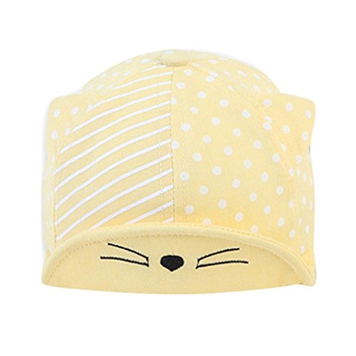 ルテンズ(Lutents )キャップ 猫耳 女の子 男の子 子供 可愛い ドット ストライプ 帽子 コーデ アクセント ネコ耳 キュート 上品 スパンコール レース 可愛い サイズ調整可 野球帽 春夏 旅行 UVカット 1-3歳 48-50cm プレゼント カジュアル (黄)