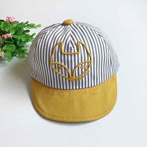 ルテンズ(Lutents)キャップ キツネ柄 ストライプ 女の子 男の子 子供 可愛い ストライプ 帽子 コーデ アクセント キュート 上品 スパンコール 可愛い サイズ調整可 野球帽 春夏 旅行 UVカット 1-3歳 48-50cm (黄)
